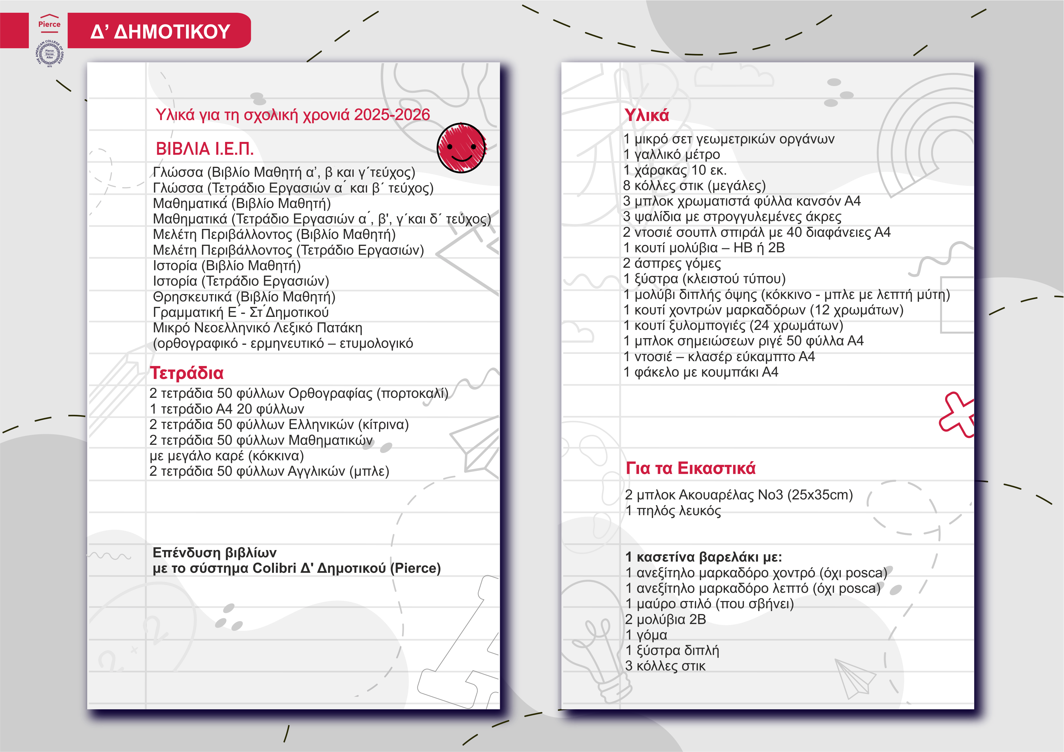 Πακέτο Δ' δημοτικού μαθητών Pierce (+επένδυση Colibri)