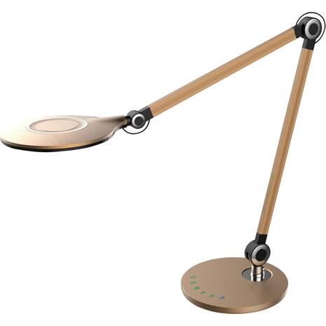 Διαθέτοντας στρογγυλή βάση και κλασικούς αρθρωτούς βραχίονες από υλικό ABS σε ΧΡΥΣΟ χρώμα, το HM4452.09 είναι κατασκευασμένο με γνώμονα την αντοχή. Από την στρογγυλή αυτή βάση έχετε πρόσβαση, μέσω ενός ελεγχόμενου με την αφή πάνελ, στις ρυθμίσεις θερμοκρασίας τριών χρωμάτων αλλά και των 3 ειδικών λειτουργιών φωτισμού (ανάπαυσης-εργασίας-διαβάσματος), όπως και στη λειτουργία μείωσης της φωτεινότητας (stepless). Όλες αυτές οι ρυθμίσεις σας επιτρέπουν να προσαρμόσετε τον φωτισμό σύμφωνα με τις ανάγκες σας, είτε κάνετε λεπτομερείς εργασίες είτε απολαμβάνετε στιγμές χαλάρωσης.