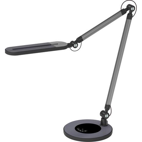 Διαθέτοντας βάση και αρθρωτούς βραχίονες από υλικό ABS σε ΜΑΥΡΟ και ΓΚΡΙ χρώμα, το HM4462.02 είναι κατασκευασμένο με γνώμονα την αντοχή και την πολυτέλεια. Στην στρογγυλή βάση υπάρχει το panel ελέγχου μέσω αφής (touch), που δίνει πρόσβαση στις ρυθμίσεις θερμοκρασίας τριών χρωμάτων, και στη λειτουργία μείωσης της φωτεινότητας (stepless dimming). Στο ίδιο panel υπάρχουν επίσης και οι 3 διαφορετικές ρυθμίσεις στο είδος του φωτισμού που επιθυμείτε ανάλογα με την δραστηριότητα σας (χαλάρωση-δουλειά-διάβασμα). Όλες αυτές οι ρυθμίσεις σας επιτρέπουν να προσαρμόσετε τον φωτισμό σύμφωνα με τις ανάγκες σας, είτε κάνετε λεπτομερείς εργασίες είτε απολαμβάνετε στιγμές χαλάρωσης. Κομβικό ρόλο παίζουν βέβαια και οι αρθρωτοί βραχίονες που παρέχουν απαράμιλλη ευελιξία, επιτρέποντάς σας να κατευθύνετε το φως ακριβώς εκεί που το χρειάζεστε!