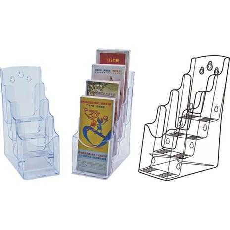 Χρησιμοποιήστε αυτό το επιτραπέζιο σταντ για να εκθέσετε διαφημιστικά φυλλάδια, καταλόγους και περιοδικά μεγέθους 1/3 Α4 τεσάρων θέσεων. Κατασκευασμένο από σκληρό διαφανές πλαστικό. Είναι ιδανικό για τοποθέτηση σε εκθεσιακούς χώρους, ταξιδιωτικά πρακτορεία και αίθουσες συνεδριάσεων.