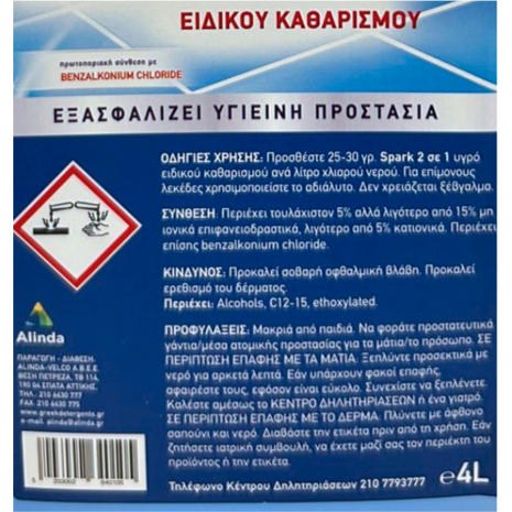 • Επαγγελματικό Υγρό Καθαρισμού 2 σε1 Spark 4Lt