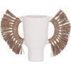 Το επιτραπέζιο χειροποίητο διακοσμητικό βάζο ALICA είναι ένα πολύ ιδιαίτερο διακοσμητικό στοιχείο για κάθε χώρο. Είναι κατασκευασμένο εξολοκλήρου από τερακότα σε ΛΕΥΚΟ χρώμα, ενώ διαθέτει και δύο χερούλια επενδυμένα με αποξηραμένο grass, και ένα φαρδύ στόμιο.