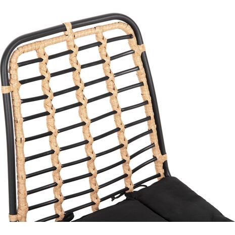 Το κάθισμα της καρέκλας είναι από συνθετικό Rattan σε πλέξη wicker. Στα περισσότερα έπιπλα κήπου και γενικά σε έπιπλα για εξωτερικούς χώρους χρησιμοποιείται συνθετικό Rattan από PVC, δηλαδή τεχνητές ίνες υψηλής ποιότητας. Αυτό δίνει στην κατασκευή εξαιρετική αντοχή και ανθεκτικότητα σε ακραίες συνθήκες ζέστης ή κρύου.