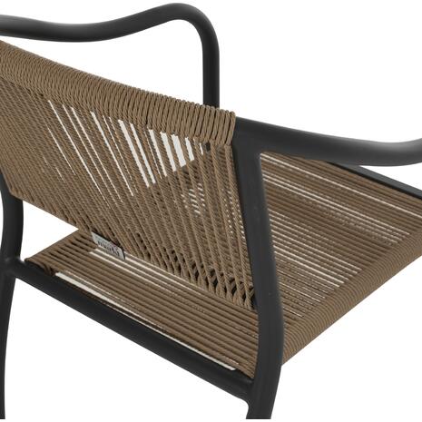 Η πολυθρόνα HM5856.02 είναι επιβλητική! Μοντέρνα, άνετη και σταθερή! Η διχρωμία του ΑΝΘΡΑΚΙ σκελετού με την ΜΠΕΖ επένδυση από RATTAN-wicker σχοινί στο κάθισμα και την πλάτη είναι μοναδική. Η πλάτη είναι ελαφρώς στρογγυλεμένη ενώ το κάθισμα αντί για μαξιλάρι έχει πλέξη από σχοινί πολυεστερικού wicker-rattan. Η πολυθρόνα αυτή θα αναβαθμίσει αισθητικά τον χώρο που θα την τοποθετήσετε και θα τραβήξει τα βλέμματα χάρη στα υλικά κατασκευής της. Επίσης, το γεγονός ότι είναι στοιβαζόμενη την κάνει ιδιαιτέρως πρακτική αφού μπορείτε να την αποθηκεύσετε στον μικρότερο δυνατό χώρο.