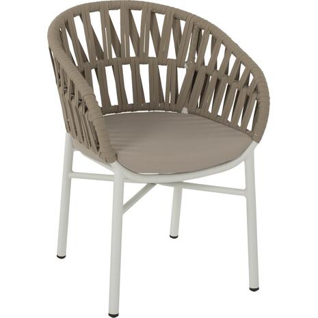 Η πολυθρόνα HM5857.02 είναι όμορφη! Μοντέρνα, άνετη και σταθερή! Η διχρωμία του ΛΕΥΚΟΥ σκελετού με την ΜΠΕΖ επένδυση από σχοινί σε όλη την πλάτη είναι μοναδική. Η πλάτη με τα μπράτσα αποτελούν ένα ενιαίο ημικυκλικό κομμάτι με μια δοκό που ακολουθεί το σχέδιο και είναι πλεγμένη με σχοινί και αγκαλιάζει το σώμα, ενώ η κλίση στα μπράτσα είναι χαρακτηριστική. Το μαξιλάρι του καθίσματος είναι και αυτό σε μπεζ χρώμα και είναι άνετο. Η πολυθρόνα αυτή θα αναβαθμίσει αισθητικά τον χώρο που θα την τοποθετήσετε και θα τραβήξει τα βλέμματα χάρη στα υλικά κατασκευής της. Επίσης, το γεγονός ότι είναι στοιβαζόμενη την κάνει ιδιαιτέρως πρακτική αφού μπορείτε να την αποθηκεύσετε στον μικρότερο δυνατό χώρο.