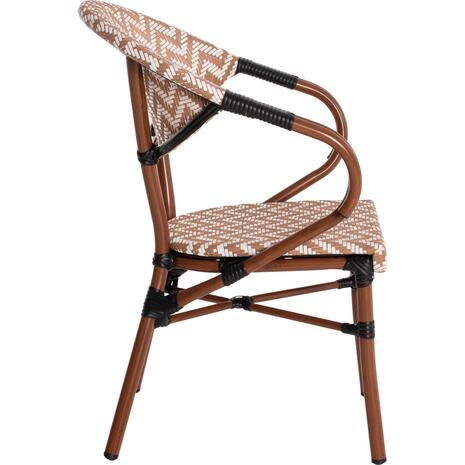 Η καρέκλα ΗΜ5861.03 δεν περνάει απαρατήρητη. Ο σκελετός με την όψη bamboo που επιτείνεται με τα δεσίματα στις διάφορες ενώσεις του, είναι ανθεκτικότατος, ενώ το κάθισμα και η πλάτη έχουν επένδυση από textilene σε ΑΣΠΡΟ-ΚΑΦΕ χρώμα. Τα μπράτσα έχουν έντονη κλίση, αλλά δημιουργούν την αίσθηση ότι η πολυθρόνα αγκαλιάζει το σώμα. Μια πρόταση διαχρονική και ταυτόχρονα κλασική που θα συμπληρώσει και θα ταιριάξει όμορφα με πληθώρα άλλων επίπλων στον εξωτερικό σας χώρο.