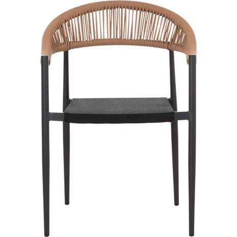 Η πλάτη της πολυθρόνας είναι επενδυμένη με πολυεστερικό RATTAN. Στα περισσότερα έπιπλα κήπου και γενικά σε έπιπλα για εξωτερικούς χώρους χρησιμοποιείται συνθετικό υλικό από PVC, δηλαδή τεχνητές ίνες υψηλής ποιότητας. Αυτό δίνει στην κατασκευή εξαιρετική αντοχή και ανθεκτικότητα σε ακραίες συνθήκες ζέστης ή κρύου.