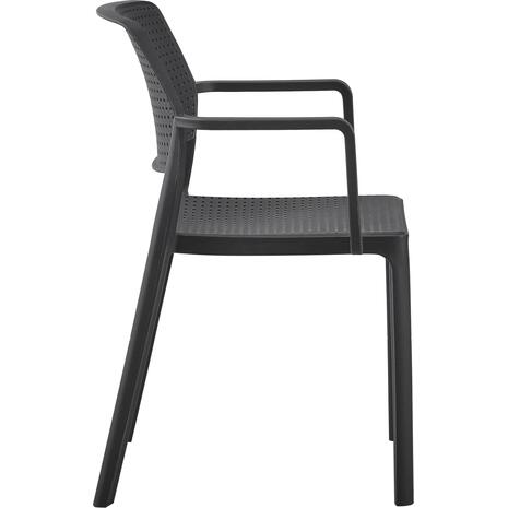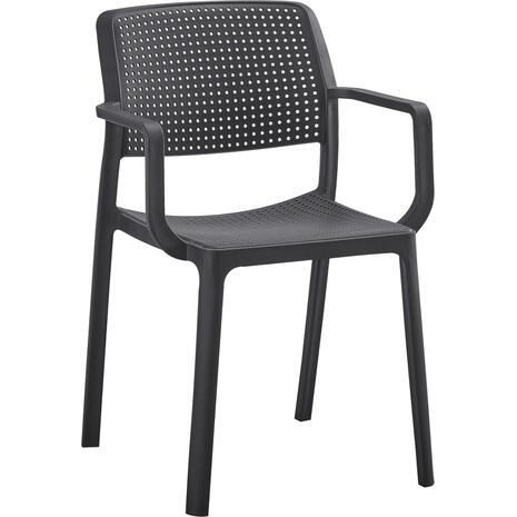 Η πολυθρόνα COMFEE έχει όλα όσα θα θέλατε από ένα τέτοιο έπιπλο. Είναι κατασκευασμένη από μονοκόμματο πολυπροπυλένιο σε ΜΑΥΡΟ χρώμα με ελαφρώς κυρτή πλάτη, η οποία όπως και το κάθισμα έχουν «τρυπητό» σχέδιο. Όλη η κατασκευή είναι ελαφριά και άνετη με ψηλά μπράτσα, και θα γίνει το αγαπημένο κάθισμα σε όποιο χώρο κι αν τοποθετηθεί χάρη στην πρακτικότητά του. Ιδανική επιλογή και για επαγγελματική χρήση, όπως σε catering κτλ.