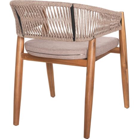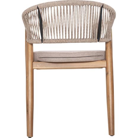 Η πολυθρόνα τραπεζαρίας εξωτερικού χώρου NAVAN συνδυάζει αρμονικά διαφορετικά υλικά κατασκευής. Τα πόδια είναι από ξύλο ακακίας στο ΦΥΣΙΚΟ του χρώμα, ενώ ο σκελετός της πλάτης είναι μεταλλικός με πλέξη από nylon σχοινί σε ΜΠΕΖ χρώμα. Το κάθισμα διαθέτει μαξιλάρι με πολυεστερικό ύφασμα επίσης σε ΜΠΕΖ χρώμα. Οι σχεδιαστικές γραμμές είναι κομψές και με γνώμονα την άνεση του χρήστη και θα αποτελέσει το κέντρο ενδιαφέροντος οπουδήποτε και αν τοποθετηθεί, ιδιαίτερα όμως αν συνδυαστεί με το ανάλογο τραπέζι.