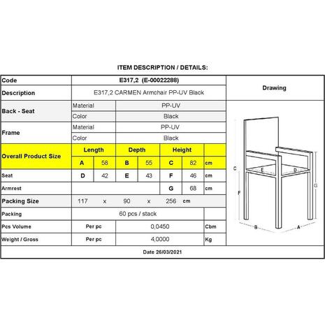 • Πολυθρόνα Τραπεζαρίας Κήπου CARMEN Στοιβαζόμενη, PP - UV Protection, Απόχρωση Μαύρο [Ε-00022288] Ε317,2 - Ανακάλυψε ποιοτικά και μοντέρνα Σετ Κήπου-Βεράντας και Έπιπλα για όλους τους χώρους από το Οikonomou-shop.