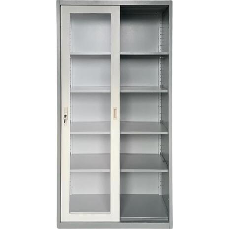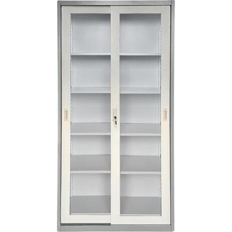ΝΤΟΥΛΑΠΑ Δίφυλλη με Συρόμενες επάλληλες πόρτες, 4 Ράφια, Μέταλλο Βαφή Γκρι (Ε6012,1)