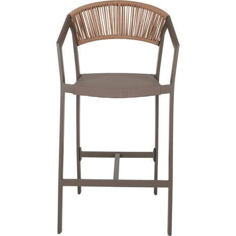 Η πλάτη του σκαμπό είναι επενδυμένη με πολυεστερικό RATTAN. Στα περισσότερα έπιπλα κήπου και γενικά σε έπιπλα για εξωτερικούς χώρους χρησιμοποιείται συνθετικό υλικό από PVC, δηλαδή τεχνητές ίνες υψηλής ποιότητας. Αυτό δίνει στην κατασκευή εξαιρετική αντοχή και ανθεκτικότητα σε ακραίες συνθήκες ζέστης ή κρύου.