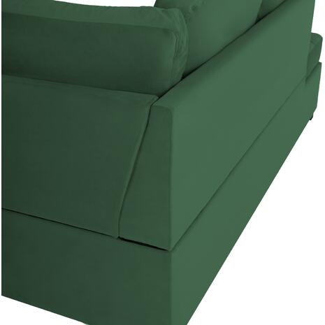 Ο καναπές είναι επενδυμένος με βελούδινο ύφασμα εξαιρετικής ποιότητας. Το βελούδο είναι ένα ύφασμα απαλό, χαλαρό, απολαυστικό και φινετσάτο. Παλιά κατασκευαζόταν κυρίως από μεταξωτές ίνες και μάλιστα με μία πολύ ειδική επεξεργασία, που απαιτούσε πολύ χρόνο και ειδικό αργαλειό. Ευτυχώς, σήμερα τα πράγματα έχουν αλλάξει και το υπέροχο αυτό ύφασμα είναι προσιτό για όλους.