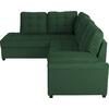 Ο καναπές γωνία JADE, επενδυμένος με καπιτονέ βελούδινο ύφασμα σε απόχρωση ΚΥΠΑΡΙΣΣΙ είναι ελκυστικότατος. Αποτελείται από ένα 3-θέσιο καναπέ κι ένα ανάκλιντρο που «φτιάχνει» την γωνία. Η γωνία αυτή είναι αριστερή και ο καναπές μπορεί να μετατραπεί σε κρεβάτι τραβώντας με τα ειδικά χερούλια το πρόσθετο ράντζο που υπάρχει κάτω από το μεγάλο μέρος του καναπέ. Το κάθισμα είναι άνετο και ευρύχωρο ενώ τα πόδια είναι από πολυαιθυλένιο σε ΜΑΥΡΟ χρώμα.