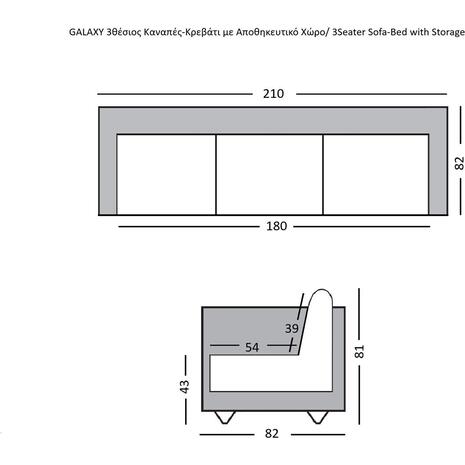 • GALAXY Καναπές – Κρεβάτι με Αποθηκευτικό Χώρο, 3Θέσιος Ύφασμα Σκούρο Γκρι (Ε9938,1)