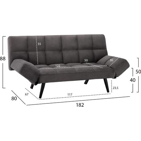 Πτυσσόμενος καναπές-κρεβάτι κατάλληλος για το καθιστικό ή το δωμάτιό σας,η πλάτη του, έχει την δυνατότητα να πέφτει πίσω και να μετατρέπεται εύκολα σε ένα άνετο κρεβάτι ή να παραμένει σε ανάκλιση, ενώ τα μπράτσα του είναι αναδιπλούμενα.