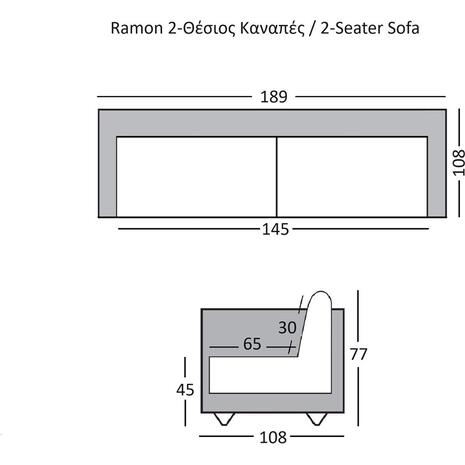 RAMON Καναπές 2θ - Σαλονιού - Καθιστικού, Ύφασμα Γκρι (Ε7165,22)