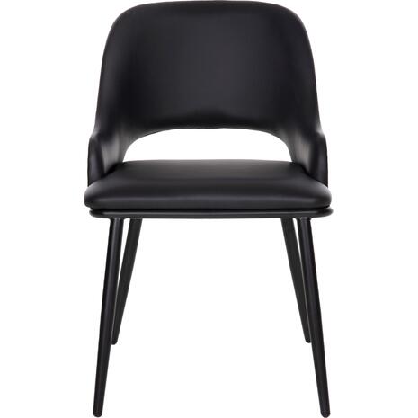 Καρέκλα DELF σε ΜΑΥΡΗ απόχρωση με ξύλινη πλάτη σε ΚΑΡΥΔΙ χρώμα, και ΜΑΥΡΑ μεταλλικά πόδια. Η ξύλινη πλάτη είναι κυρτή και αναπαυτική. Μια καρέκλα που δίνει αέρα πολυτέλειας σε οποιοδήποτε χώρο. Ποιοτική και κομψή σίγουρα θα τραβήξει τα βλέμματα.