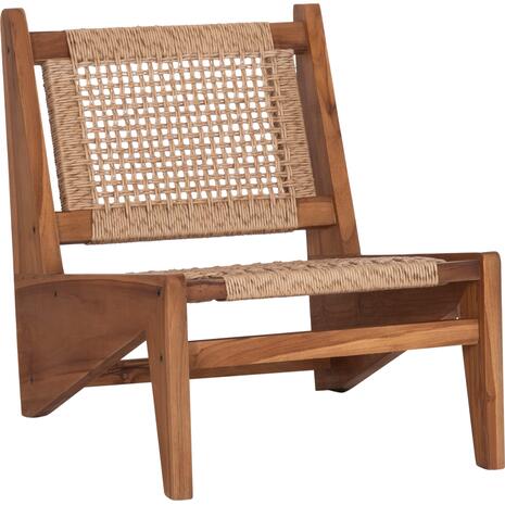 Η καρέκλα lounge LUKILLA είναι όμορφη και πρακτική. Ο πανέμορφος χαμηλός σκελετός της είναι από ποιοτικό ξύλο, ενώ τόσο η μεσαίου ύψους πλάτη όσο και το φαρδύ κάθισμα αποτελούνται από αριστοτεχνικά πλεγμένο συνθετικό σχοινί άριστης ποιότητας. Οι σχεδιαστικές γραμμές της καρέκλας είναι ιδιαίτερες με χαρακτηριστικό την απουσία των πίσω ποδιών και με γνώμονα την άνεση του χρήστη. Το ξύλο έχει φυσικό χρώμα που μπορεί άνετα να συνδυαστεί με διάφορα διακοσμητικά μοτίβα.