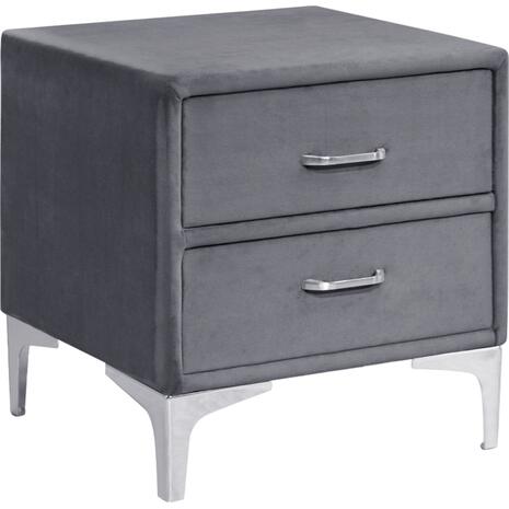 Κομοδίνο Lyon από βελούδο σε γκρι απόχρωση με μεταλλικές ασημί λεπτομέρειες.