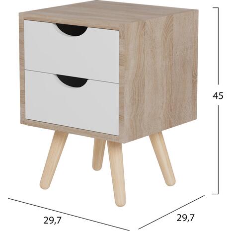 Το κομοδίνο DINKL είναι ένα πρακτικό και όμορφο έπιπλο που θα συνοδεύσει και θα συμπληρώσει με τον καλύτερο τρόπο τον εξοπλισμό του υπνοδωματίου σας. Είναι κατασκευασμένο από ποιοτική μελαμίνη σε ΛΕΥΚΟ και SONAMA χρώμα και διαθέτει 2 συρτάρια με χωνευτά χερούλια. Τα πόδια είναι ψηλά και ξύλινα, και οι διαστάσεις του το καθιστούν ιδανικό ακόμα και για μικρά δωμάτια, ενώ ενδείκνυται τόσο για το σπίτι, όσο και για επαγγελματική χρήση.