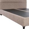 Το κεφαλάρι είναι ψηλό και έχει διακόσμηση με 2 μόνο τρουκς (κουμπάκια), ενώ και όλη η επένδυση του κρεβατιού είναι από ανάγλυφο ύφασμα τύπου NUBUCK. Το ΜΠΕΖ χρώμα σε όλο το κρεβάτι είναι ουδέτερο και μπορεί να συνδυαστεί με πληθώρα διακοσμητικών μοτίβων. Όμως, το κύριο χαρακτηριστικό αυτού του κρεβατιού είναι ότι δεν ακολουθεί την κλασική κατασκευή με τις τάβλες του σομιέ για την στήριξη του στρώματος, αλλά αντίθετα αποτελείται από μια συνεχόμενη επιφάνεια πάνω στην οποία τοποθετείται το στρώμα! Σε διαστάσεις διπλού στρώματος 150x200 εκ.