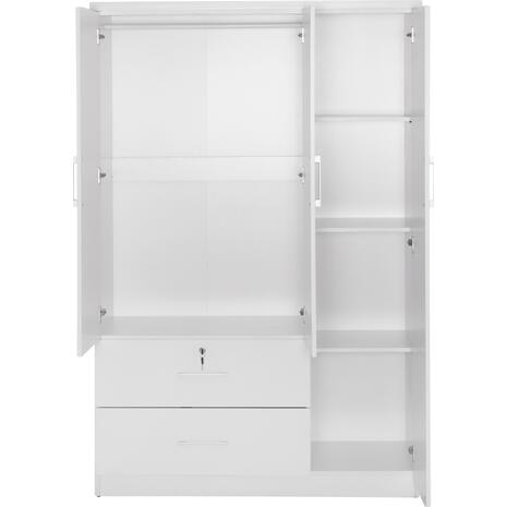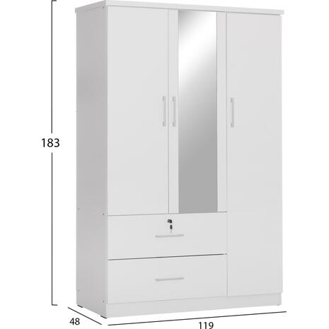 Η τρίφυλλη ντουλάπα JARRY είναι μια πρακτικότατη ντουλάπα που έχει φτιαχτεί με γνώμονα την όσο το δυνατόν καλύτερη εκμετάλλευση του χώρου. Έχει 3 πόρτες, αλλά με απροσδόκητα άνετους χώρους στο εσωτερικό της. Η πλευρά με την διπλή πόρτα διαθέτει καθρέπτη στην μία πόρτα και μια μεταλλική μπάρα για κρέμαση ρούχων στο εσωτερικό, ενώ στο κάτω μέρος υπάρχουν 2 συρτάρια, ένα εκ των οποίων διαθέτει κλειδαριά. Η πλευρά με την μονή πόρτα διαθέτει 4 ράφια (5 αποθηκευτικοί χώροι). Είναι κατασκευασμένη από μελαμίνη σε ΛΕΥΚΟ χρώμα και αισθητικά μπορεί να ταιριάξει με πολλά άλλα στυλ, χάρη και στις «καθαρές» γραμμές της.