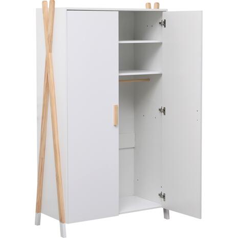 Σας παρουσιάζουμε την καινούργια παιδική (και όχι μόνο) ντουλάπα PASCHAL σε ΛΕΥΚΟ χρώμα. Είναι βολική σε διαστάσεις και διαθέτει 2 ράφια στο επάνω μέρος και μία μπάρα κρέμασης ρούχων από κάτω. Στηρίζεται σε δύο ξύλινα χιαστί πόδια σε ΦΥΣΙΚΟ χρώμα ξύλου στις δύο πλευρές. Είναι βαμμένο με αβλαβές βερνίκι με βάση το νερό και μη τοξικό, ιδανικό για παιδιά.