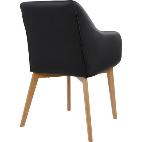Πολυθρόνα FB90141.01 με μπράτσα, σε σκούρο γκρι ύφασμα και επένδυση με τεχνόδερμα σε μαύρο χρώμα. Τα πόδια είναι μεταλλικά, βαμμένα έτσι ώστε να αποδίδουν την όψη του ξύλου.