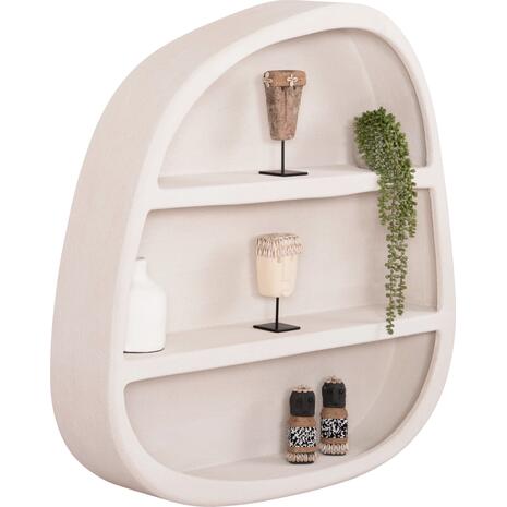 Το χειροποίητο ράφι τοίχου είναι εξολοκλήρου κατασκευασμένο από MDF με υφή σαγρέ τσιμέντου, που αποτελεί την πιο σύγχρονη τάση στον τομέα του interior design, σε ΥΠΟΛΕΥΚΟ χρώμα. Διαθέτει 2 ράφια που δημιουργούν 3 ανοιχτούς χώρους για αποθήκευση ή τοποθέτηση αντικειμένων. Αυτή η ραφιέρα έχει μοντέρνο ακανόνιστο σχήμα και θα δώσει μια επιπλέον επιλογή για να ολοκληρώσετε την, "νησιωτικού" στυλ, διακόσμησή σας.