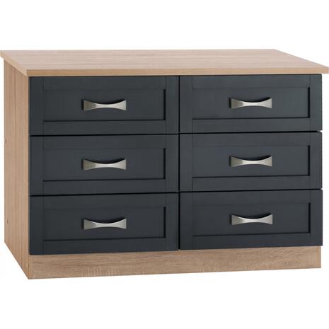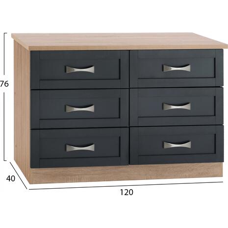 Διαθέτει έξι ευρύχωρα συρτάρια για να τοποθετήσετε τα προσωπικά σας αντικείμενα. Τα χερούλια είναι μεταλλικά σε ασημί απόχρωση.