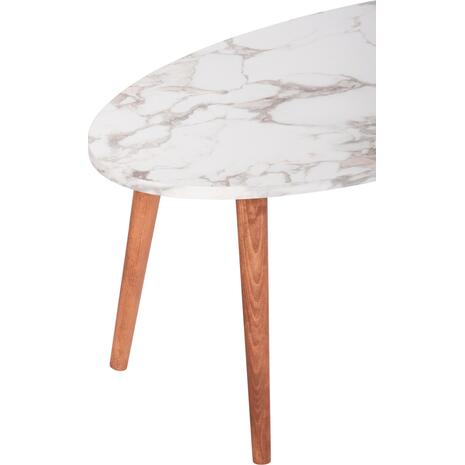 Ανακαλύψτε το VITAL. Ένα σετ που θα ικανοποιήσει και θα εξυπηρετήσει κάθε σας ανάγκη στο χώρο του σαλονιού. Αποτελείται από ένα οβάλ τραπέζι σαλονιού και 3 στρογγυλά βοηθητικά τραπεζάκια σε διαφορετικά ύψη. Οι επιφάνειες των τραπεζιών είναι από μελαμίνη σε όψη ΛΕΥΚΟΥ ΜΑΡΜΑΡΟΥ, ενώ τα πόδια τους είναι ξύλινα σε ΚΑΡΥΔΙ χρωματισμό.