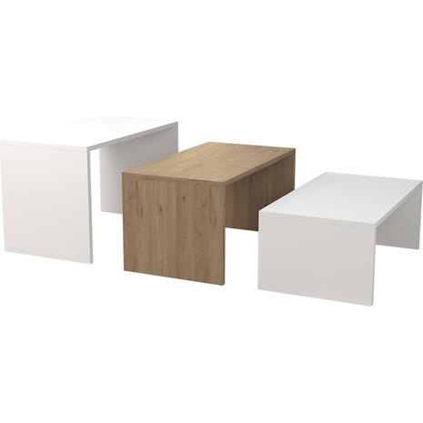 Με τα τραπεζάκια ζιγκόν BENTIL μπορείτε να δημιουργήσετε πρωτότυπες διακοσμητικές συνθέσεις, δίνοντας νέα πνοή στον χώρο σας. Πρόκειται για 3 τραπεζάκια μελαμίνης εκ των οποίων 2 σε χρώμα ΛΕΥΚΟ και ένα σε χρώμα SONOMA. Το εντυπωσιακό στοιχείο αυτού του σετ είναι ότι το στήσιμο κι η τοποθέτηση τους δίνουν την εντύπωση ενός ενιαίου τραπεζιού σαλονιού.
