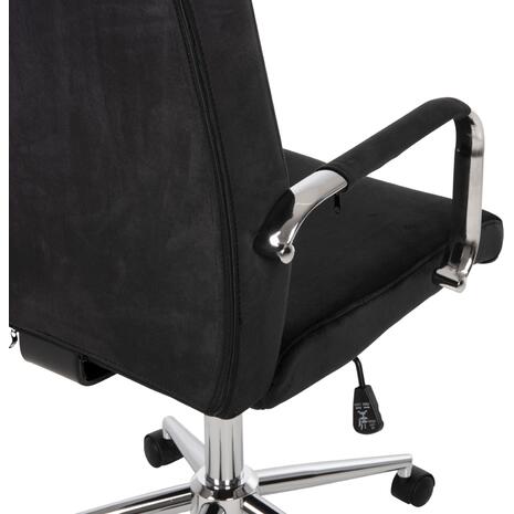 Διευθυντική καρέκλα γραφείου “JOSEF” σε ΜΑΥΡΟ χρώμα. Μια όμορφη καρέκλα γραφείου με ψηλά επίπεδα inox μπράτσα με στρογγυλεμένες γωνίες, επενδυμένα με βελούδινο ύφασμα. Η πλάτη είναι άνετη και ψηλή με «μαξιλάρι» από αφρώδη υλικά για άνεση κατά την χρήση και υποστηρίζει ολόκληρο τον κορμό σας, ενώ είναι επενδυμένη με βελούδινο ύφασμα, όπως επίσης και το φαρδύ και αναπαυτικό κάθισμα με την αναπαυτική επιφάνεια. Η inox γυαλιστερή βάση και η ανάρτηση με την ρύθμιση ύψους προσθέτουν μια αίσθηση πολυτέλειας που είναι πάντα ευπρόσδεκτη για κάθε χώρο, ενώ ο μηχανισμός της καρέκλας με τον καλαίσθητο μεταλλικό μοχλό, προσφέρει ρύθμιση ανάκλισης, για άνετη και ευχάριστη πολύωρη χρήση! Ιδανική για επαγγελματικούς χώρους κυρίως, αλλά ακόμα και για το γραφείο σας στο σπίτι εάν περνάτε αρκετές ώρες στον υπολογιστή και θέλετε μια όμορφη και πλούσια καρέκλα γραφείου.