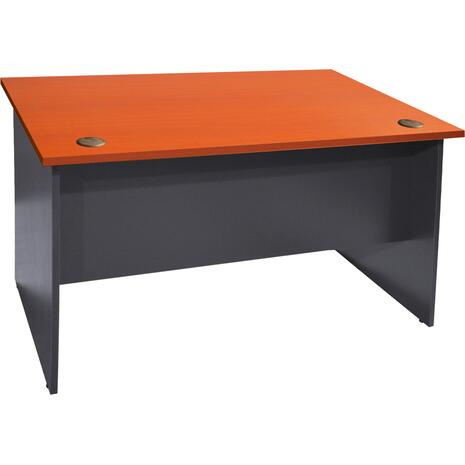 Επιφάνεια εργασίας από μελαμίνη πάχους 25mm στο χρώμα κερασί, με δύο εισόδους καλωδίων πάνω από τα πόδια. Πόδια μελαμίνης πάχους 18mm σε χρώμα γκρί.