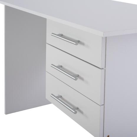 Διαθέτει μια επιφάνεια εργασίας από μελαμίνη σε λευκό χρώμα και τρια βοηθητικά συρτάρια.