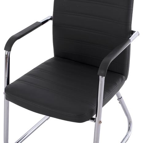 Κάντε τους επισκέπτες ή τους συνεργάτες σας να αισθανθούν άνετα με την καρέκλα DALEY. Πρόκειται για μια πολυθρόνα γραφείου συνεργασίας σε μαύρο χρώμα και λιτό σχεδιασμό αλλά σίγουρα όμορφο. Είναι χρωμιωμένη ενώ το κάθισμα και η πλάτη είναι ενωμένα. Τα μπράτσα είναι επίπεδα και αποτελούν συνέχεια του σκελετού βάσης δημιουργώντας μια πανέμορφη εικόνα, ενώ η επένδυσή της είναι ριγέ PU, τόσο στο κάθισμα, όσο και στην πλάτη. Ο σκελετός της καρέκλας έχει όμορφες καμπύλες ενώ τα μπράτσα έχουν επένδυση πολυκαρβονική για πιο ευχάριστη υφή.