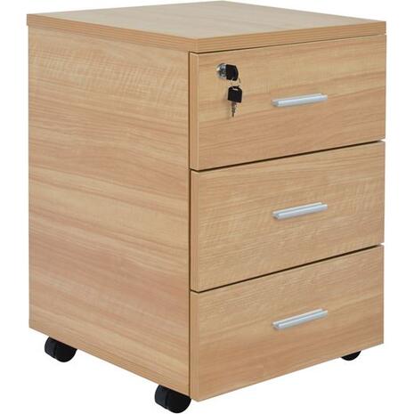 Συρταριέρα γραφείου για επαγγελματική χρήση, κατασκευασμένη από ανθεκτική μελαμίνη σε απόχρωση οξιάς με κλειδαριά,