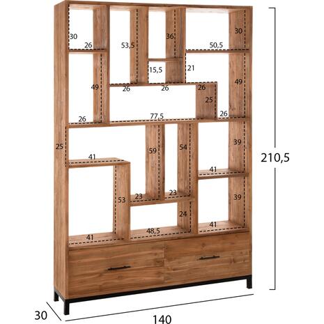 ΒΙΒΛΙΟΘΗΚΗ ROMULUS HM9803 ΑΝΑΚΥΚΛΩΜΕΝΟ ΞΥΛΟ ΤΕΑΚ ΜΕ 2 ΣΥΡΤΑΡΙΑ 140x30x210,5Yεκ.