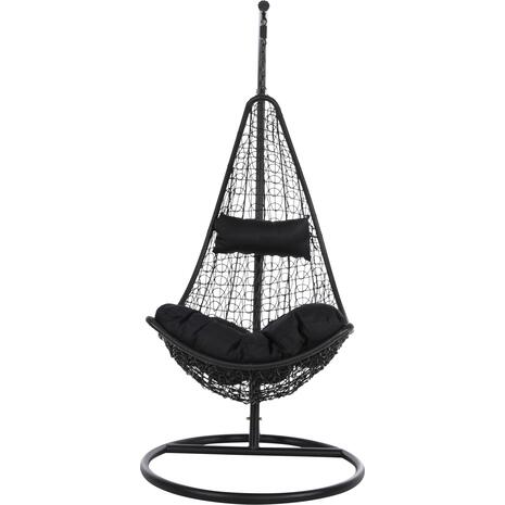 Η μονή κρεμαστή φωλιά MILLIE είναι πανέμορφη. Διαχρονικά, οι αιώρες αποτελούν την επιτομή της ξεγνοιασιάς και της χαλάρωσης. Εμείς σας προσφέρουμε την αιώρα αυτή σε στυλ κρεμαστής φωλιάς σαν μεγάλη πολυθρόνα, κατασκευασμένη από συνθετικό Rattan σε χρώμα ΜΑΥΡΟ με ΜΑΥΡΑ, επίσης, μαξιλάρια! Η στρογγυλή βάση της αιώρας-φωλιάς είναι από ΜΑΥΡΟ ενισχυμένο μέταλλο και η αιώρα κρέμεται με αλυσίδα από ένα σημείο κρέμασης. Η φωλιά αυτή μπορεί να χρησιμοποιηθεί τόσο για οικιακή όσο και για επαγγελματική χρήση.
