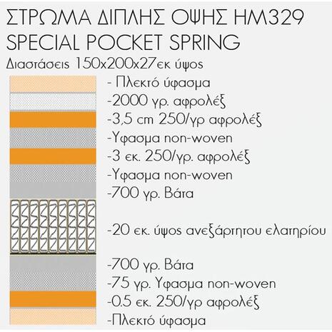 • ΣΤΡΩΜΑ HM329 ΜΕ ΕΠΙΣΤΡΩΜΑ 150X200 SPECIAL POCKET SPRING HOMEMARKT (ROLL PACKING)