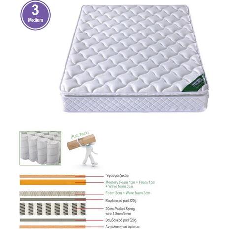 ΣΤΡΩΜΑ Pocket Spring με Ανώστρωμα Memory Foam Roll Pack Μονής Όψης (3) (Ε2047,4)