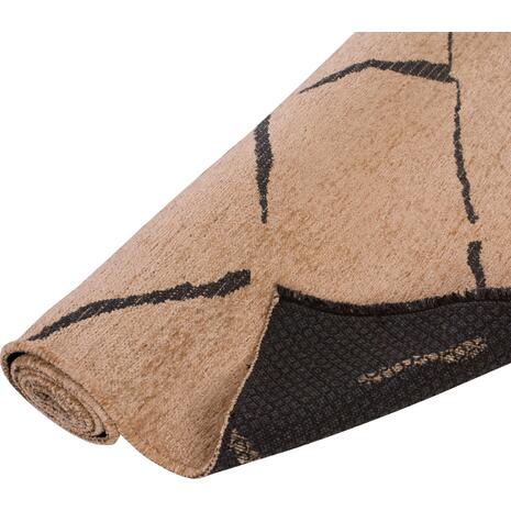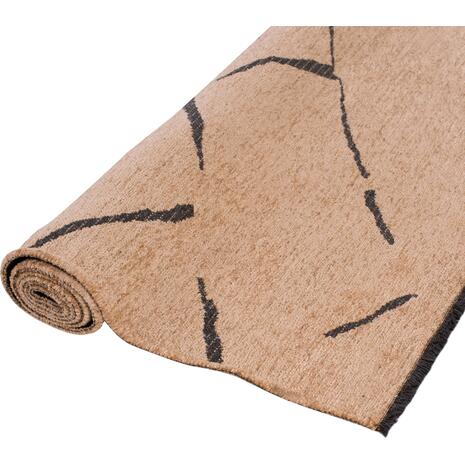 Αυτό το χαλί είναι ΑΝΟΙΧΤΟ ΚΑΦΕ με μαύρες λεπτομέρειες, και θα δώσει μια μοντέρνα αίσθηση στο σαλόνι σας.