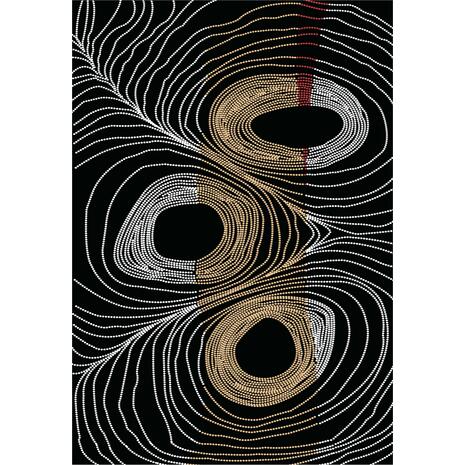 Το συγκεκριμένο χαλί είναι μοντέρνο από όποια οπτική κι αν το δεις. Έχει κυρίαρχα χρώματα το γκρι, και το χρυσό επάνω σε ολόμαυρο φόντο σε όλη την επιφάνεια του χαλιού. Το έντονο χαρακτηριστικό του είναι 3 ακανόνιστοι κύκλοι που μπορούν να ερμηνευθούν όπως το αντιλαμβάνεται ο καθένας. Γι’ αυτό και δίνει την αίσθηση της κίνησης στον χώρο και φυσικά θα προκαλέσει το ενδιαφέρον με την ιδιαίτερη λεπτομέρεια και την περίεργη ασυμμετρία των γραμμών του. Σίγουρα θα αναβαθμίσει αισθητικά το σαλόνι σας.