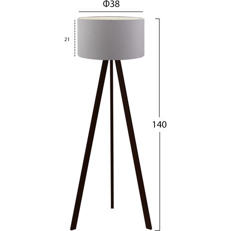 Φωτιστικό δαπέδου με τρίποδο από 100% MDF σε μαύρο χρώμα. Το κυλινδρικό «καπέλο» του φωτιστικού είναι σε ανοιχτό γκρι χρώμα. Ένα όμορφο φωτιστικό δαπέδου που θα δημιουργήσει την ατμόσφαιρα που πάντα φανταζόσασταν για τον χώρο σας, έτσι ώστε να φτιάξετε την δική σας γωνιά χαλάρωσης ή ακόμα και διακόσμησης. Διότι το φως, σημαίνει κάτι περισσότερο από ένα φωτιστικό. Σημαίνει διακόσμηση, ατμόσφαιρα, τέχνη, μεράκι, και φυσικά επιστήμη.
