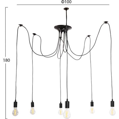 Το πολύφωτο ΗΜ4175 είναι μια ακόμα προσθήκη στην γκάμα μας. Έχει μαύρη μεταλλική βάση οροφής, από την οποία κρέμονται 6 μαύρα μακριά καλώδια που καταλήγουν σε 6 μαύρα ντουί. Αυτά τα καλώδια μπορείτε να τα αναρτήσετε με διάφορους τρόπους από την οροφή δίνοντας το δικό σας στυλ στον χώρο. Αυτό το πληθωρικό πολύφωτο θα φωτίσει με άπλετο φως μεγάλους χώρους και θα εντυπωσιάσει με το απλότητά του.
