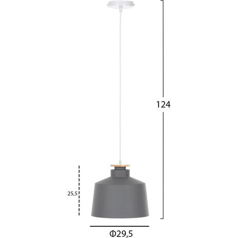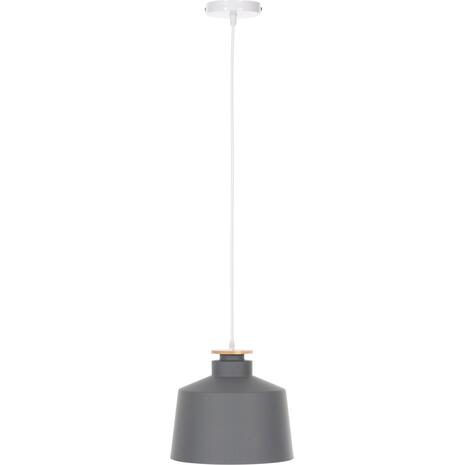 Ανακαλύψτε αυτό το νέο μας κρεμαστό φωτιστικό οροφής και ολοκληρώστε την διακόσμησή σας. Πρόκειται για ένα φωτιστικό με ΓΚΡΙ καπέλο ΑΛΟΥΜΙΝΙΟΥ σε σχήμα καμπάνας με λεπτομέρεια ξύλου στην κορυφή του φωτιστικού. Αισθητικά, ολοκληρώνεται με το λευκό καλώδιο κρέμασης και την λευκή βάση οροφής, και αποτελεί την τελευταία τάση στα φωτιστικά οροφής.
