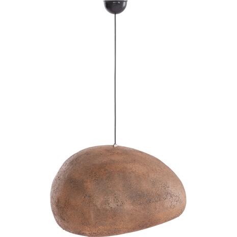 Αυτό το κρεμαστό φωτιστικό οροφής σε σχήμα πέτρας είναι κατασκευασμένο από RESIN (ΡΗΤΙΝΗ) ημιδιάφανο υλικό σε σκούρο μπεζ χρώμα και διαχέει τον φωτισμό απαλά στο χώρο, δημιουργώντας μια όμορφη ατμόσφαιρα. Αποτελεί κυρίως διακοσμητικό στοιχείο στον χώρο και απαιτεί ανάλογο περιβάλλον.