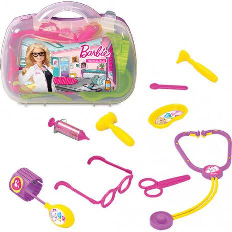 Ιατρική τσάντα με εξοπλισμό! Με χερούλι, περιέχει ιατρικά σύνεργα για παιχνίδι, ασφαλή για τα παιδιά: σύριγγα, θερμόμετρο, ψαλίδι, στηθοσκόπιο, ωτοσκόπιο, πιεσόμετρο, γυαλιά και ιατρικό δίσκο. Ευνοεί το συμβολικό παιχνίδι και τις προσωπικές προτιμήσεις.