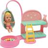 Το σετ περιλαμβάνει 1 κούνια, πισίνα με μπάλες για παιχνίδι και δύο κουκέτες για να κοιμούνται δύο μωράκια (περιέχεται ένα). Η πάνω κουκέτα έχει αστεράκια που φωσφορίζουν στο σκοτάδι, περιέχεται και σκάλα.